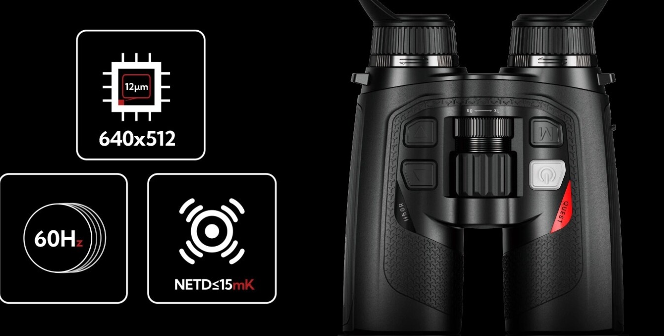 The QUEST is lightweight and portable, offering a detection range of up to 2600m and a built-in concealed LRF with a 1000m range for superior accuracy and visibility. Its traditional binocular design features a full-rubber coating and an IP67 rating for durability and comfort in harsh conditions. Equipped with a high-performance 640x512 sensor (NETD ≤15mK, 60Hz), the QUEST ensures exceptional image clarity, superior thermal sensitivity, and seamless performance in challenging environments.