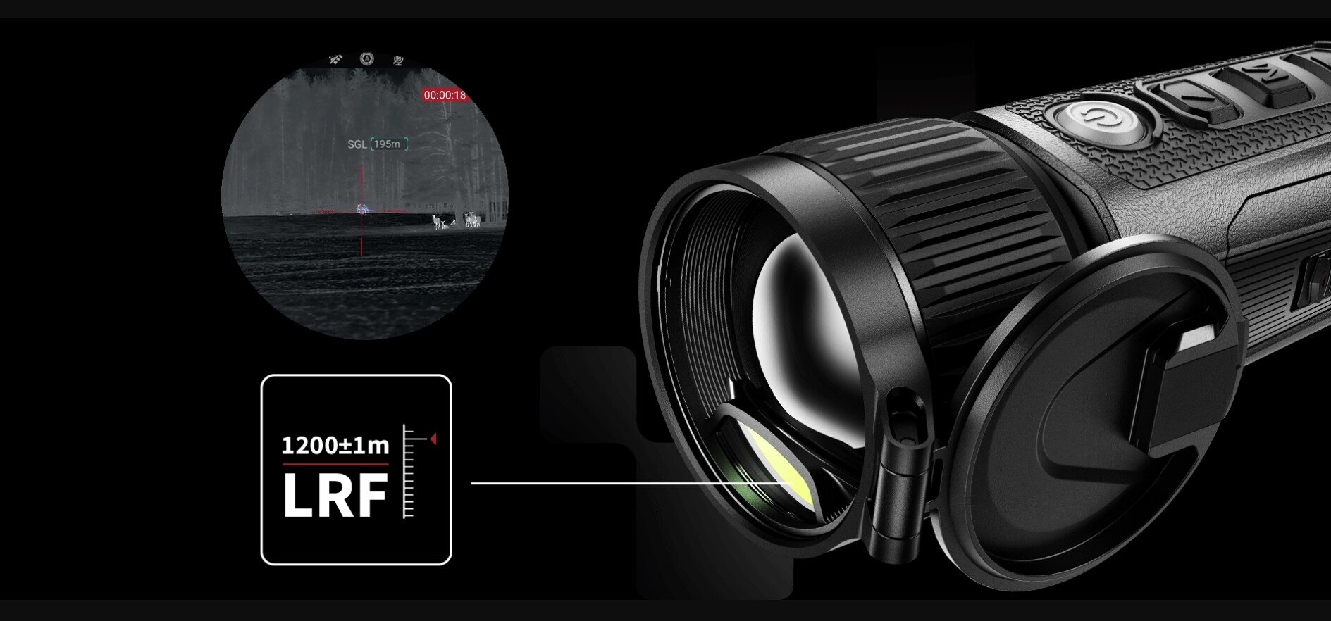 Onze geïntegreerde 2-in-1 laserafstandsmeter (LRF 1200 m) combineert esthetiek met perfecte optische asuitlijning. Het lichte, compacte ontwerp minimaliseert lensoppervlakgebruik en behoudt een vlekkeloze beeldkwaliteit.