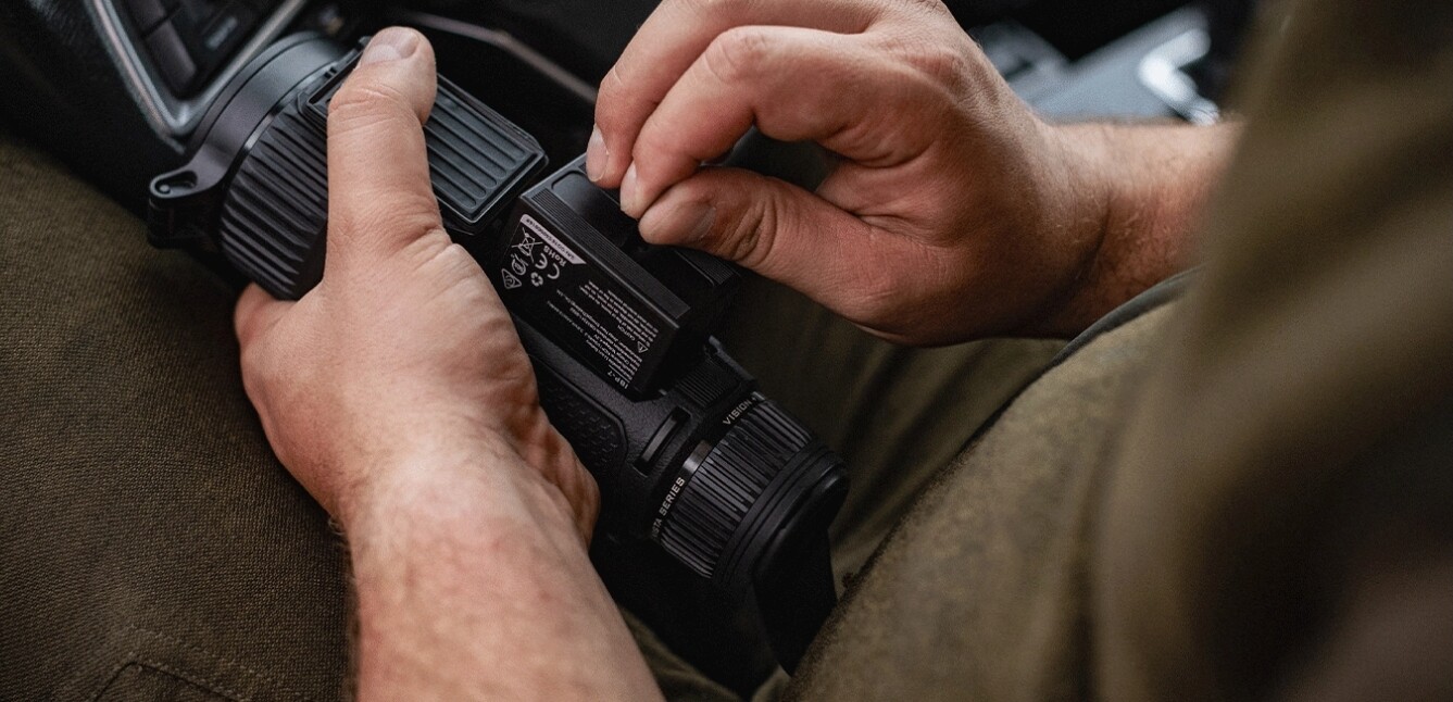 De Vista biedt twee oplaadopties: verwisselbare IBP-7/4400mAh batterijen die eenvoudig te vervangen zijn, of direct opladen via de ingebouwde poort. Dit garandeert langdurig gebruik, zodat je je volledig kunt richten op de jacht zonder batterijzorgen.