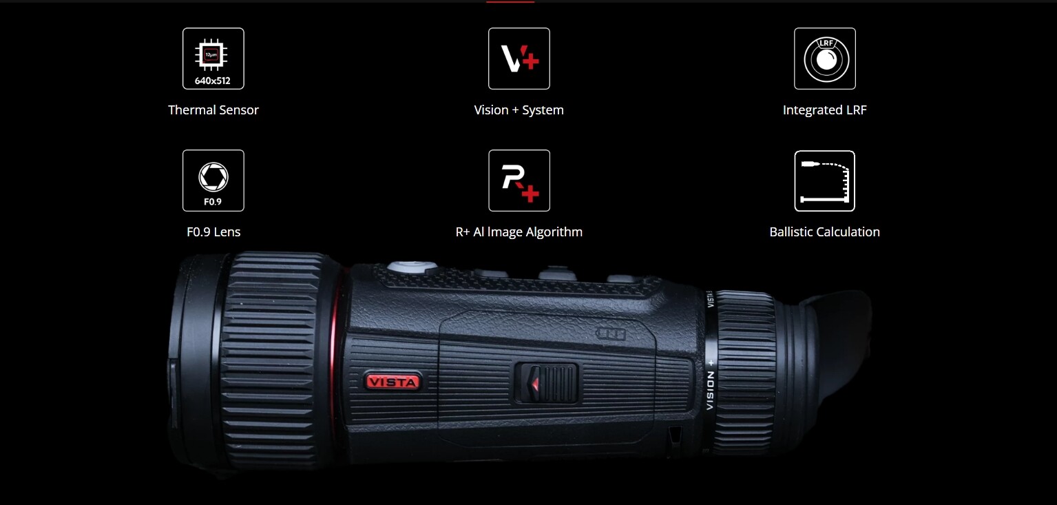 Vista’s Vision+ Systeem, met een 2560×2560 AMOLED-display en een uitgangspupildiameter van 8 mm, biedt een meeslepende observatie-ervaring. Uitgerust met een geavanceerde sensor en geïntegreerde laserafstandsmeter (LRF), levert Vista topprestaties binnen de industrie. Het gebruiksvriendelijke ontwerp en de verbeterde batterijoplossing maken het tot de ideale metgezel voor het overwinnen van uitdagingen in de buitenlucht.